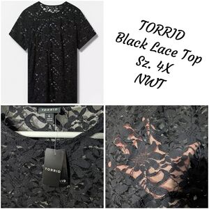 Torrid, NWOT, Black Lace Sweetheart Bodice Challis, Wide Leg Jumpsuit, Size 3X