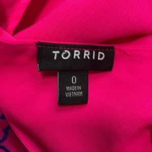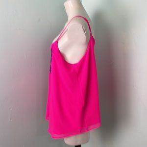 TORRID PLUS SIZE 0X fluorescent pink embroidered purple ribbon strap top