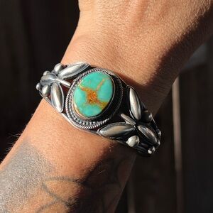 Im gonna keep her for a bit longer guys! Hit me up if you're serious about buying her and I might change my mind! Gorgeous HUGE Royston stone on this Beauty! Sz. 8.5. Measures 1 7/8” Long and 1 1/8” wide