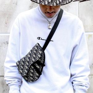 Christian Dior Homme Oblique Saddle Belt Bag Navy Trotter Black Leather