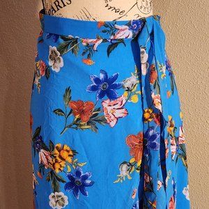 CALVIN KLEIN Womens Blue Floral Ruffled Faux Wrap Midi Skirt - Sz 14 - NEW NWOT