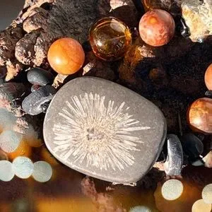 Natural Fossil Pendant - 1 3/4” l x 1 1/2” w x 3/4” d (uneven dimensions).