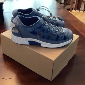 Chico’s blue, green, white, no iron blouse.