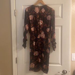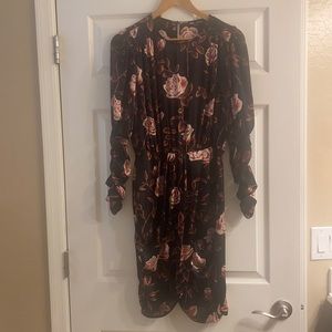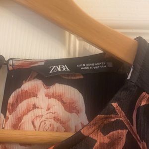 Zara Ruched Long Sleeve Rose Print Mini Asymmetrical Dress NWOT