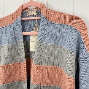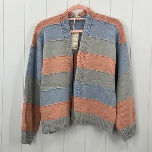 703. Hem & Thread Open Cardigan Sweater Color Block Stripe Cotton Blend New Item