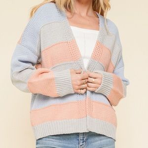 🆕Hem & Thread Open Cardigan Sweater Color Block Stripe Cotton Blend Multi Color S,M & L Available