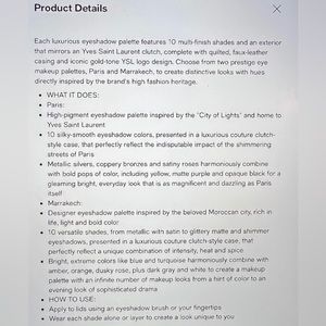 Luxurious Eyeshadow palette features 10 multi-finish shades and an exterior that mirrors an Yves Saint Laurent clutch, complete with quilted, faux-leather casing and iconic gold-tone YSL logo design.