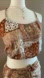 Top: A chic tank top in a bohemian print pattern featuring a halter neckline, open back with self-tie, and a cropped hem.
