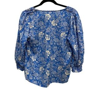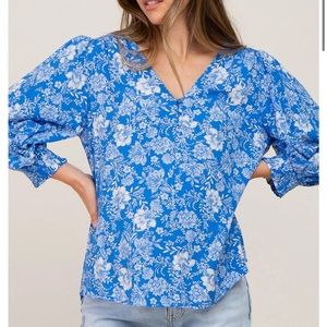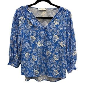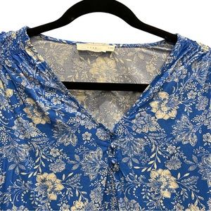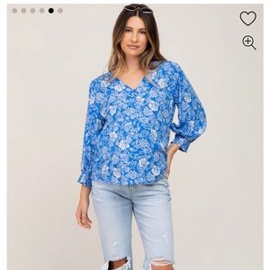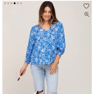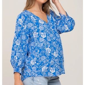 Pinkblush Blue Floral Paisley Button Front 3/4 Sleeve Maternity Top