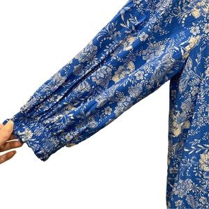 Pinkblush Blue Floral Paisley Button Front 3/4 Sleeve Maternity Blouse