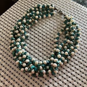 Vintage Sterling 925 Genuine Turquoise Necklace of 5 strands of 20” freshwater pearls.