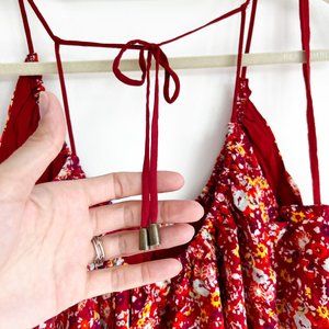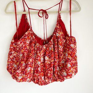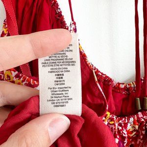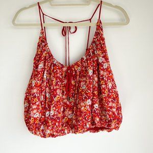 Look no further for the perfect summer top! This pillowy and lightweight tank from Urban Outfitters has elastic at the bottom hem to create a rouched look. Great paired with shorts or high waist pants. Adjustable tie at back. Labeled a small but could fit a M-L (please check measurements below before ordering).