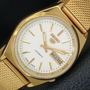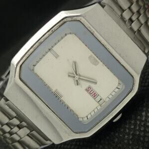 The case is stainless steel and nearly looks brand new considering its age. The face features Gold Accents on red Face giving a great vintage look overall as well as day date function! Japan Made!
