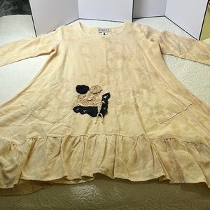 ⭐️L&B Lucky & Blessed nwt tea dyed crochet flower asymmetrical hem dress M