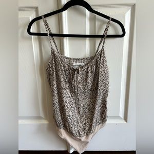 A&F Cinched Tie Front Cheetah Bodysuit, Size M