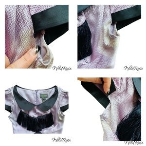 ZAC POSEN MARILYN DRESS - Lilac & Navy Blue Collared Fringe Silk Dress SZ 2