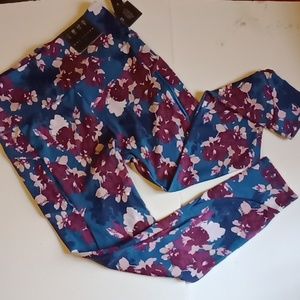 Kay Unger Active High Waist Tummy Control Leggings Ninfee Print (water lily) XLarge, NWT