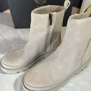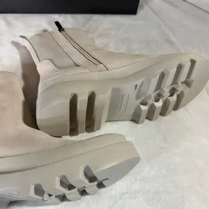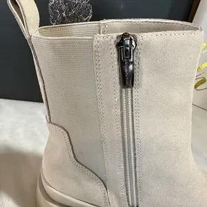Super Cute Booties never worn. Size 7 trues to size, milky white, leather-suede upper, 1.5” heel, 6.25” shaft height, zipper on the side, round toe, combat style, great quality.
