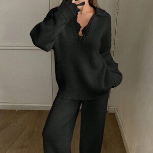 Black Preppy Womens Cable Knit Ruffle Trim Sweater Vest