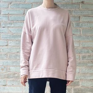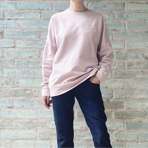 Oversized Sweatshirt in Dusty Rose by COS, size medium. Unisex minimalist sweat shirt in muted pastel pink. Long sleeves with dropped shoulder, simple crewneck, oversized silhouette with long length hemline, terry lined. 100% cotton. Classic casual athleisure staple for spring!