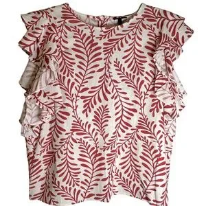 Who What Wear Women’s Red & Off White Linen Blend Sleeveless Ruffle Size XL NWT