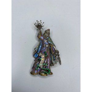 Kirk's Folly Merlin Pin Brooch Wizard Silver Tone Sorcerer Moon Stars Lizzard