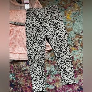 Beautiful Nannette girls 4T set, includes lace top and animal print leggings. I included some close up pictures of the lace pattern. Also comes with a sparkling silver belt. It’s so pretty and new with tags. My daughter outgrew it before having a chance to wear it.