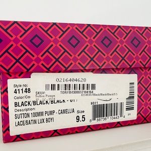 TORY BURCH Satin Lace Leather Black Pointy Toe Camellia shoes Heels pumps US 9.5