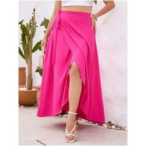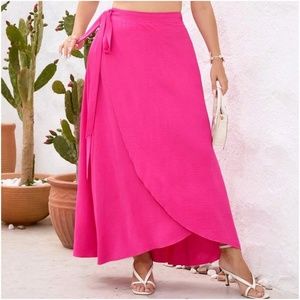 Plus Hot Pink Tie Maxi Skirt