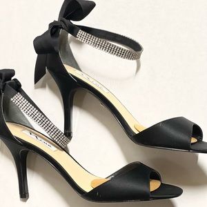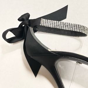 Black Satin Dress Shoes with Rhinestone anklet