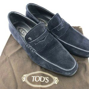 $645 TODS Mens Suede Penny Loafers Navy Blue Slip