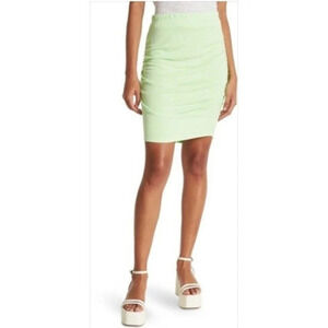 - Drawstring elastic waist - High Rise - Terry Cotton - side pockets - embroidered logo - Cotton Polyester blend - Color is a light yellow cream New with tags Waist across: 13 in Inseam: 2 1/4 in Front rise: 14 in
