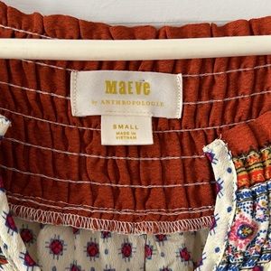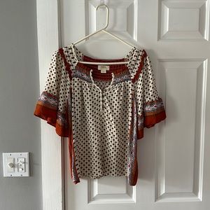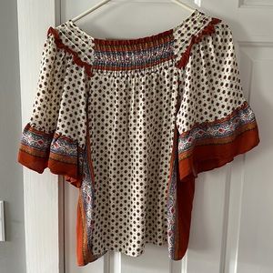 Maeve Anthropologie hippie blouse with flowy sleeves. Gorgeous fabric with burnt orange and cream colors. Very Daisy Jones. Size small and has slightly oversized fit.