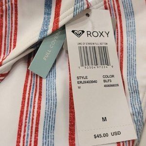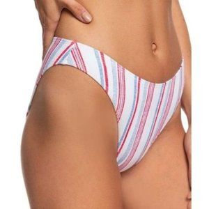 NWT ROXY Red Blue Lake Stars Stripe High-Leg Bikini Swim Bottoms Medium
