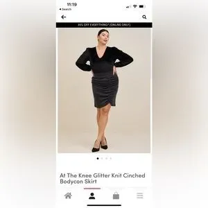 NWT At the Knee Glitter Knit Cinched Bodycon Skirt