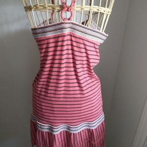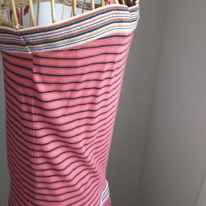Beautiful Free people 100% cotton mini dress. love this dress. No wear, non smoker or perfume.. like new so incredibly comfy and easy wear.. striped multi color elastic grip band across the chest. Striped multi color Low waist. Swing bottom.