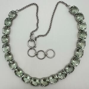 Great condition with hints of tarnishing near clasp. Each strand is loaded with solid metal charms spaced evenly apart, giving the illusion of floating.