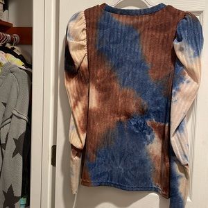Tie dye, ballon sleeve, light. True to size small. New but without tag