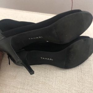 Tahari Black Super-Comfy Booties with back zipper. Only worn 2 times. Damage to leather on back of heels but otherwise in great condition.
