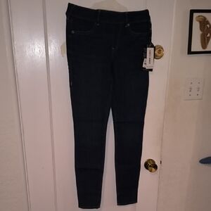 No material tag available. Most likely made out of cotton and spandex.