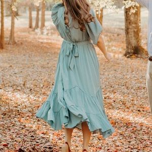 I bought this dress from an online boutique and cannot remember which one. It is a size small. No stains or tears. The dress ties in the back. I have worn the dress a handful of times.