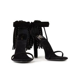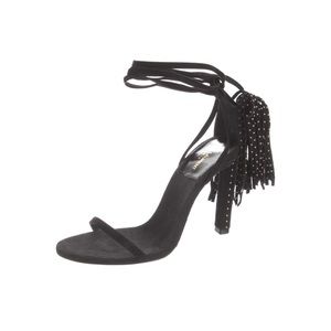 YSL SUEDE STRAPPY TASSEL HEEL