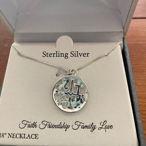 “Faith Friendship Family Love” Necklace -by Timeless Sterling Silver; NWT, NIB