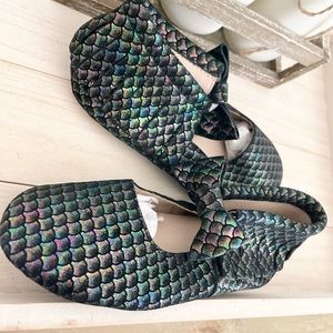 Chameleon Girls Bow Monkey Feet, size 5-6 Y. Mermaid scales these shoes have such a beautiful Chameleon changing to them that the pictures don’t do it justice. Brand new never used with packaging.