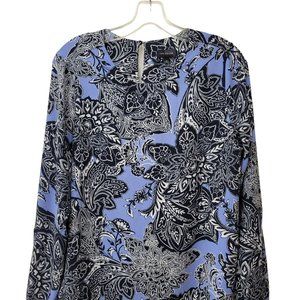 Size Medium. Lying flat it measures 20 1/2" across under the arms, 20 1/2" across the waist and 31" long from the back of the neck to the hem. High/Low hem, shorter in front, Polyester, very good condition.