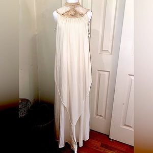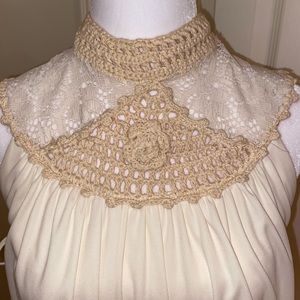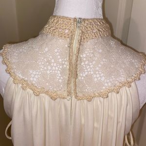 This is a GODDESS of a dress!!! NWT Vintage 60’s layered Maxi Dress. Crochet and Lace neck. Fits like a medium. Gorgeous as a unique wedding dress…. Or really any occasion