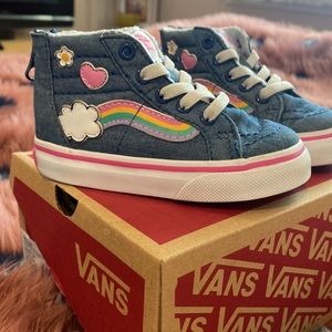 VANS - TODDLER SK8-HI ZIP RAINBOW SIDESTRIPE, DENIM/WHITE