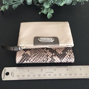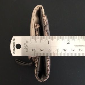 Python will never go out of style! This beautiful leather wallet is part of the Amalfi collection. Wallet has four credit card slots, an ID window, pocket for cash/receipts and a zippered coin pocket. One slip pocket on the outside. The leather is super soft. See my closet for matching purse. Bundle and tap “Buy Now” for one shipping fee.