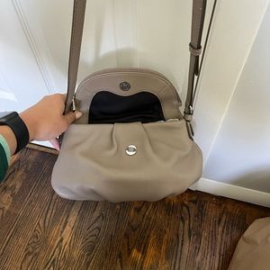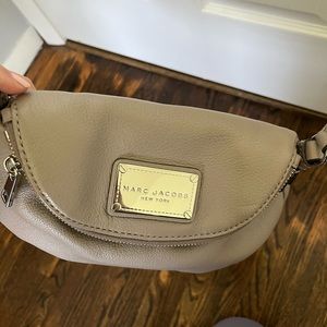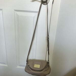 Excellent used condition Marc Jacobs leather crossbody! I would describe it as a taupe color. Magnetic closure to main compartment but also zippers into a section that makes up the flap opening. Adjustable strap. Silver hardware