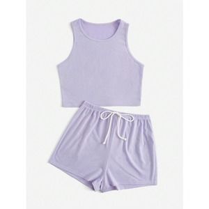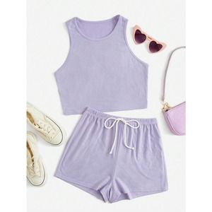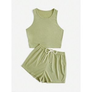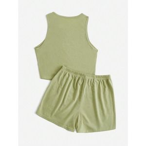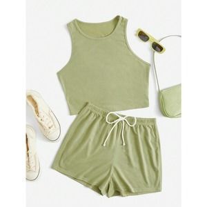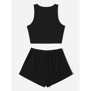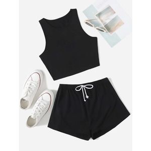 black two piece set: Crop Tank Top & Knot Front Shorts athleisure